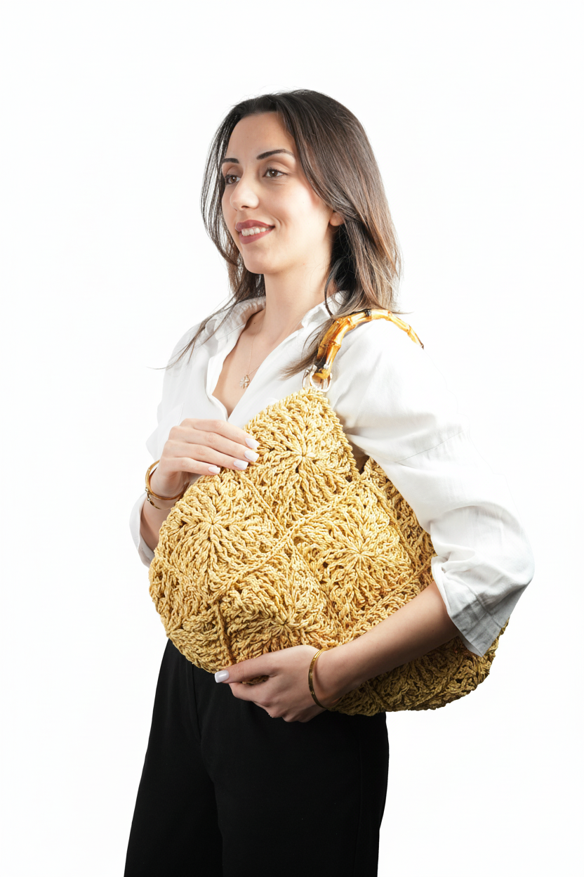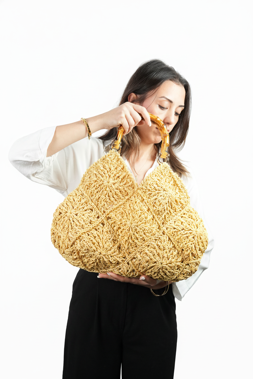 El yapımı kalite: Her detayında ustalık bulunan bu çanta, tamamen el örgüsü kağıt iplikle üretilmiştir — her biri benzersizdir.