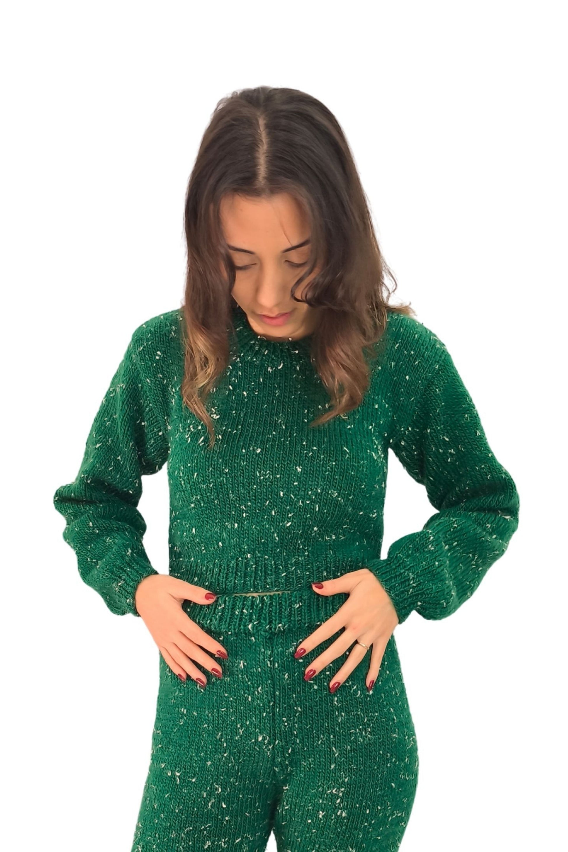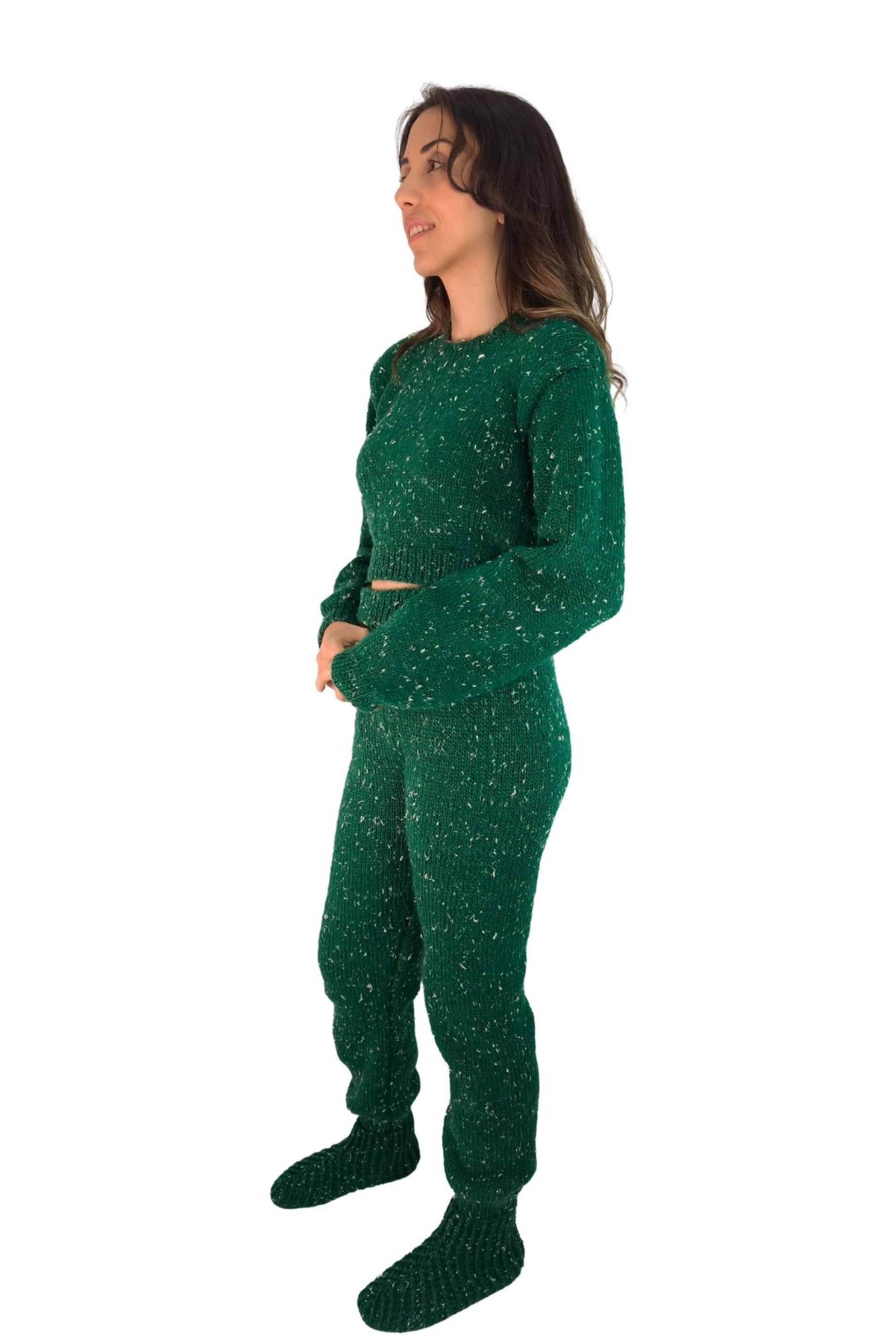 El Örgüsü Yeşil Triko Alt-Üst Takım