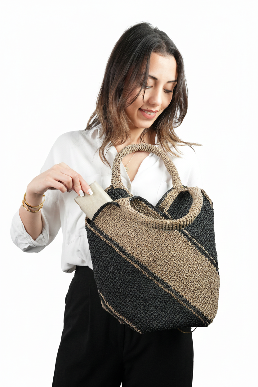 El yapımı kalite: Her detayında ustalık bulunan bu çanta, tamamen el örgüsü kağıt iplikle üretilmiştir — her biri benzersizdir.