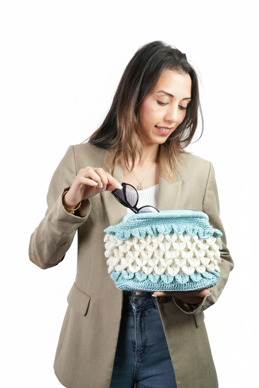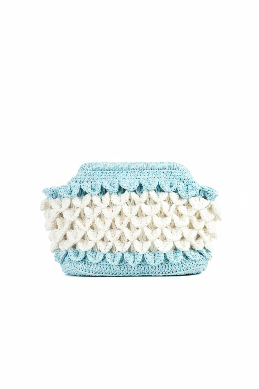 El Yapımı Timsah Deri Desenli Mavi Beyaz Çanta