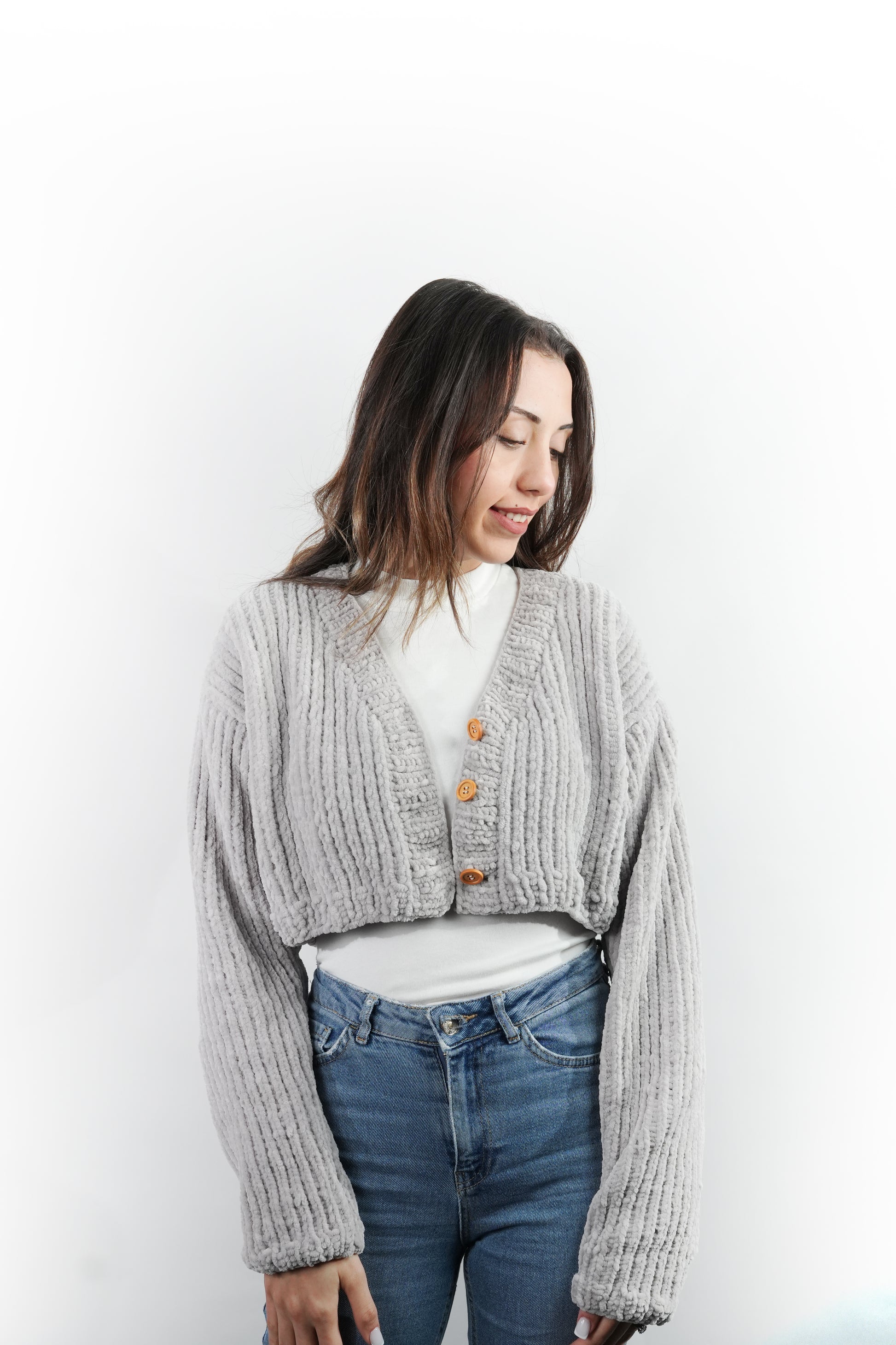 El Yapımı Ultra Yumuşak Kalın Rahat Örgü Kadın Kısa Hırka