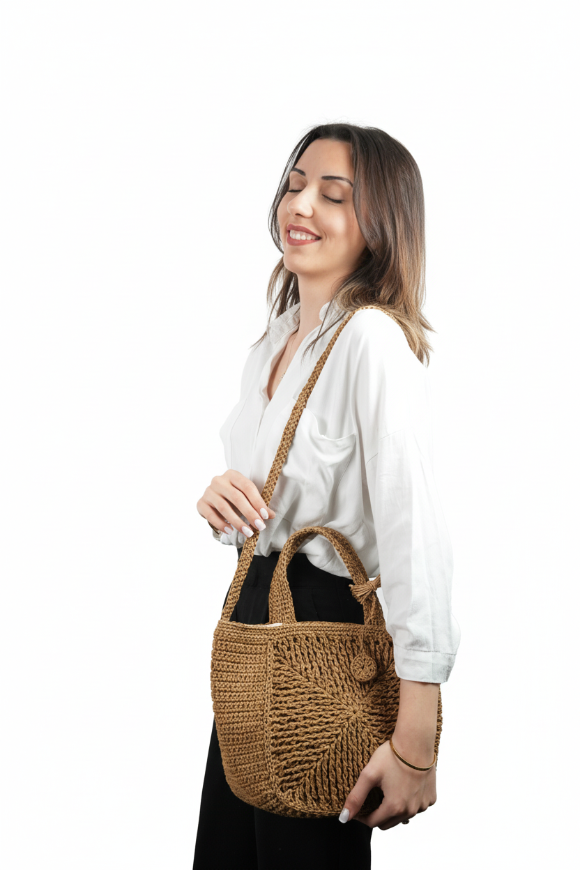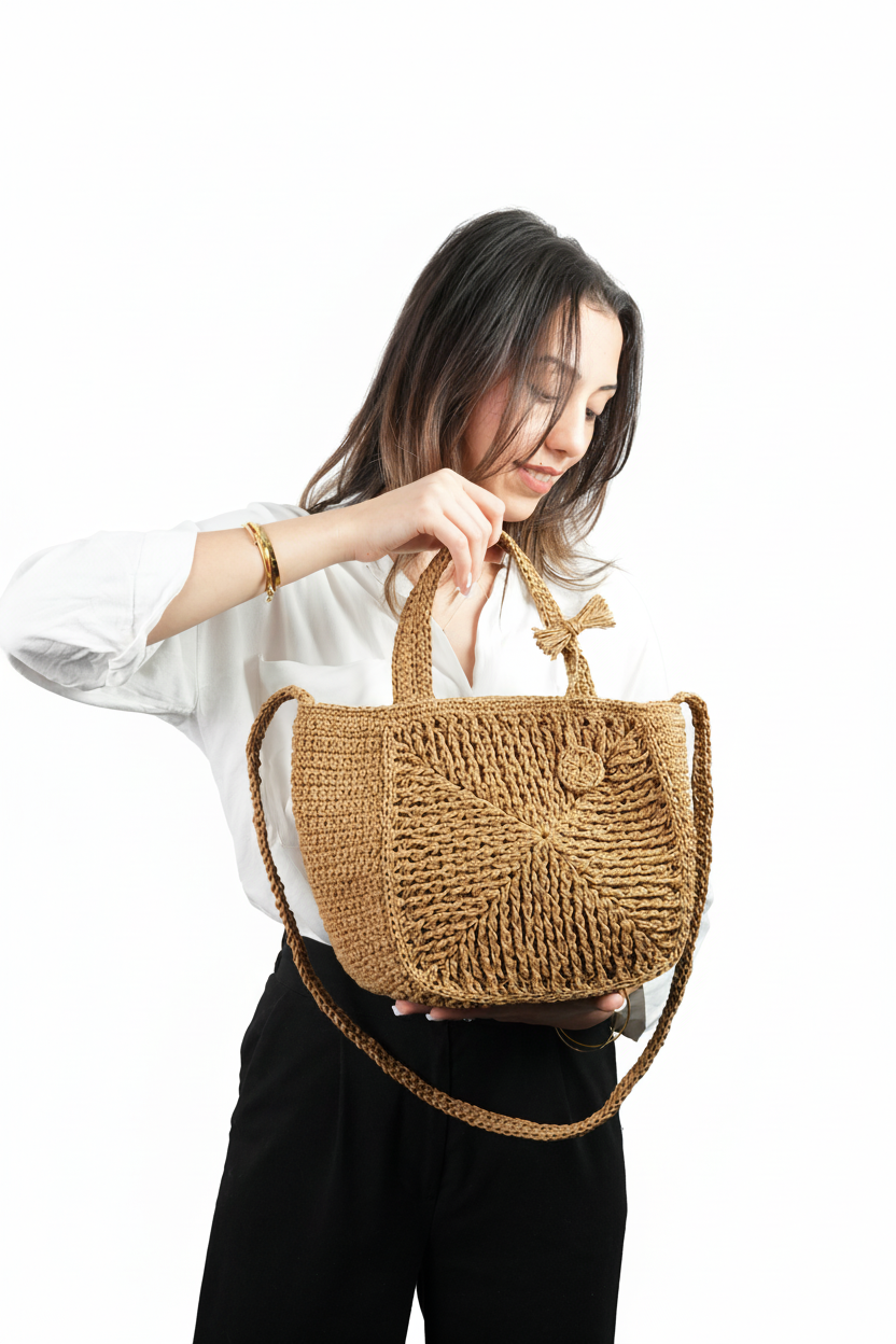 El yapımı kalite: Her detayında ustalık bulunan bu çanta, tamamen el örgüsü kağıt iplikle üretilmiştir — her biri benzersizdir.
