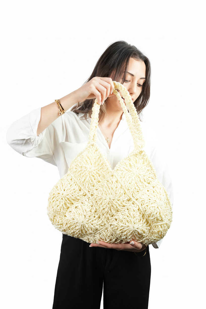 El yapımı kalite: Her detayında ustalık bulunan bu çanta, tamamen el örgüsü kağıt iplikle üretilmiştir — her biri benzersizdir.