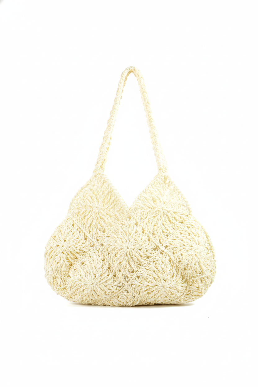 Motifli El Yapımı Örgü Çanta – Krem Renk Omuz Çantası