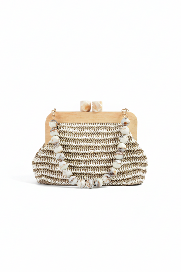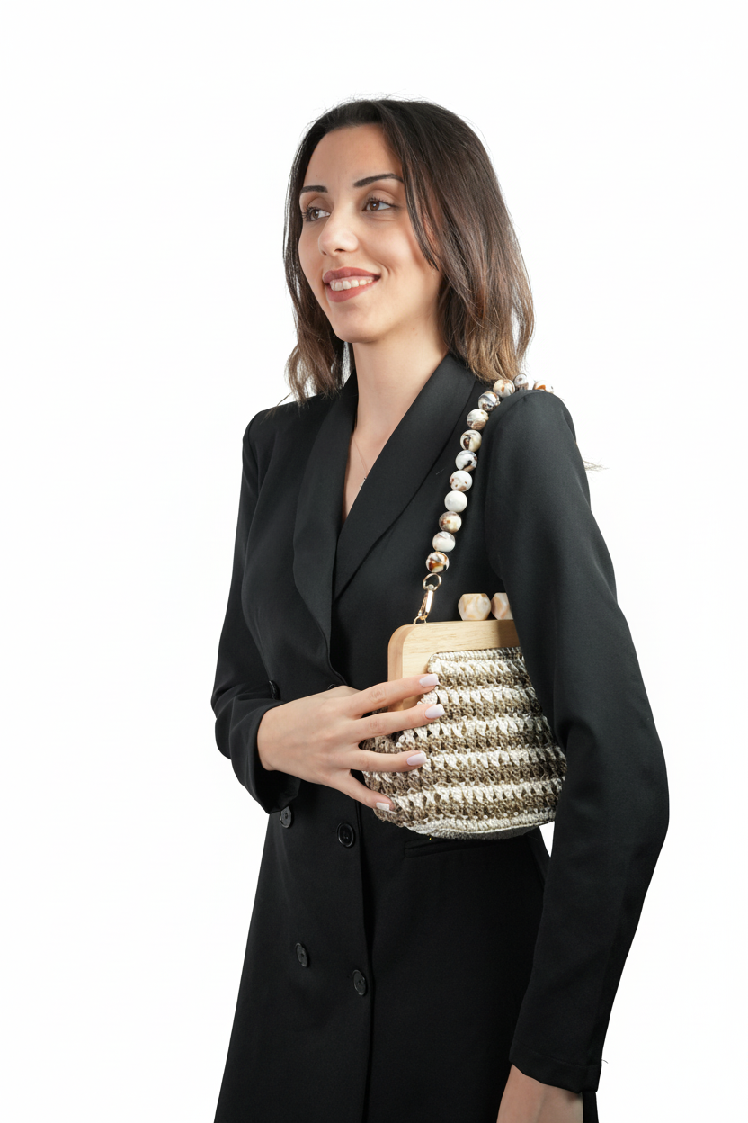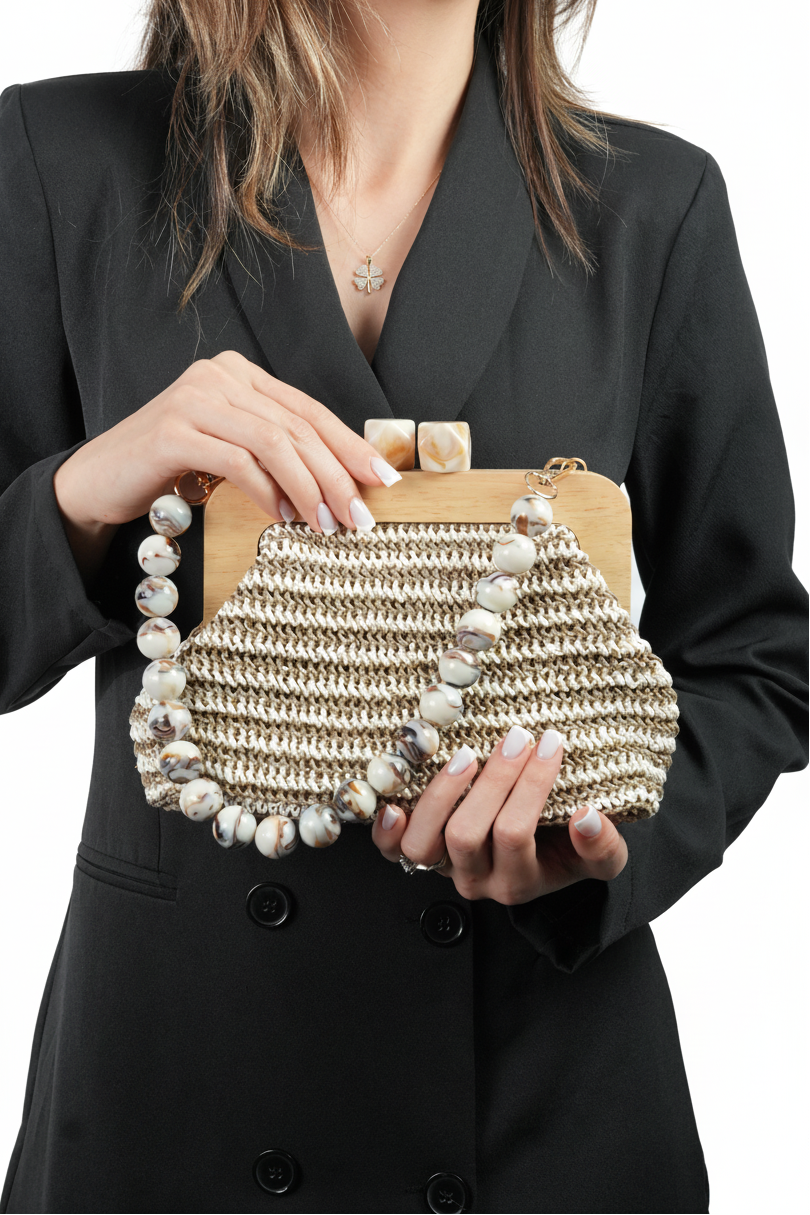 Özel Tasarım Kağıt İp Çanta | Tahta Burslu, İnci Saplı El Yapımı Çanta