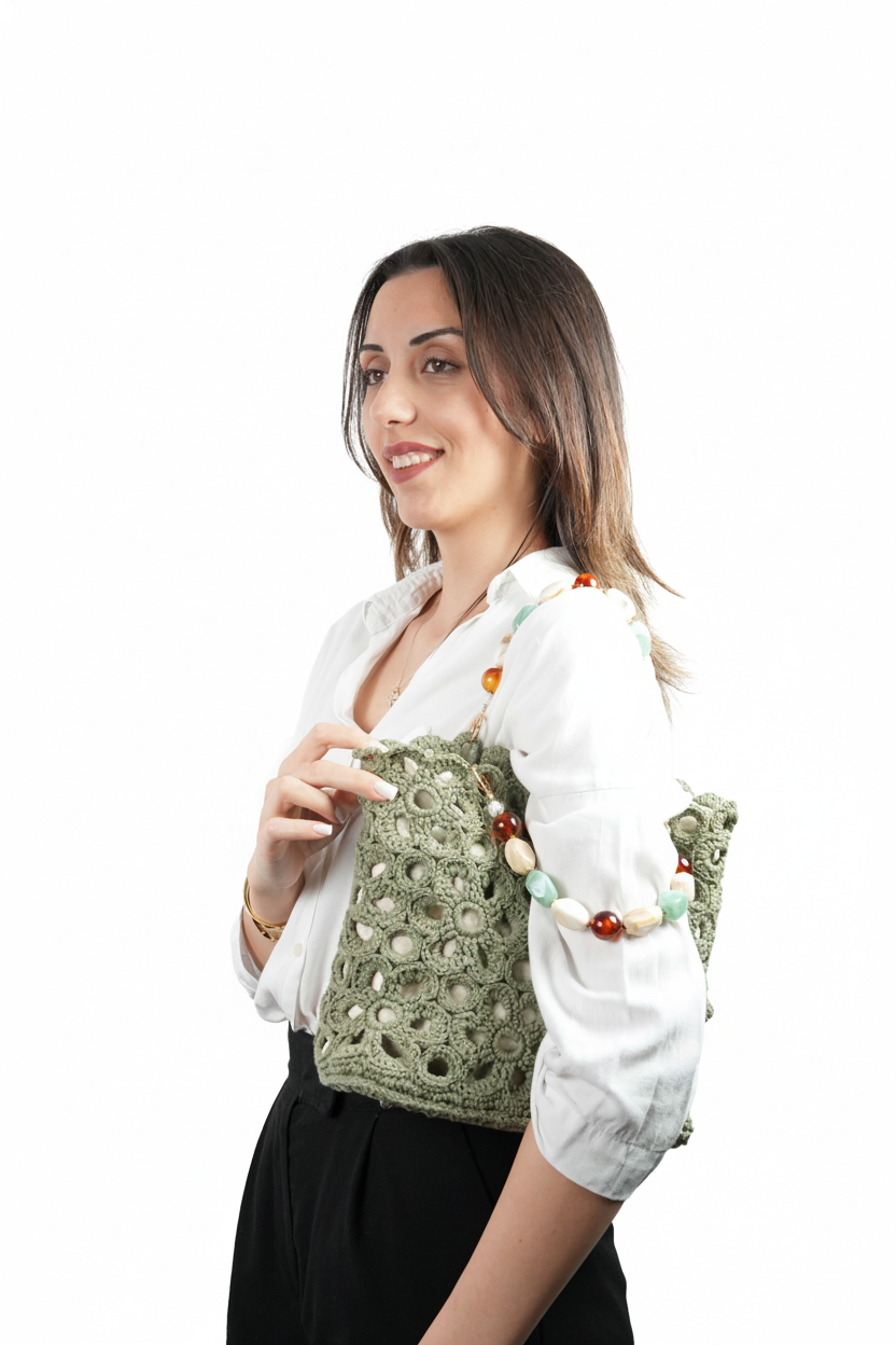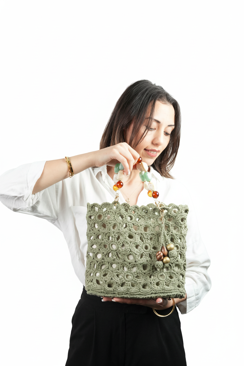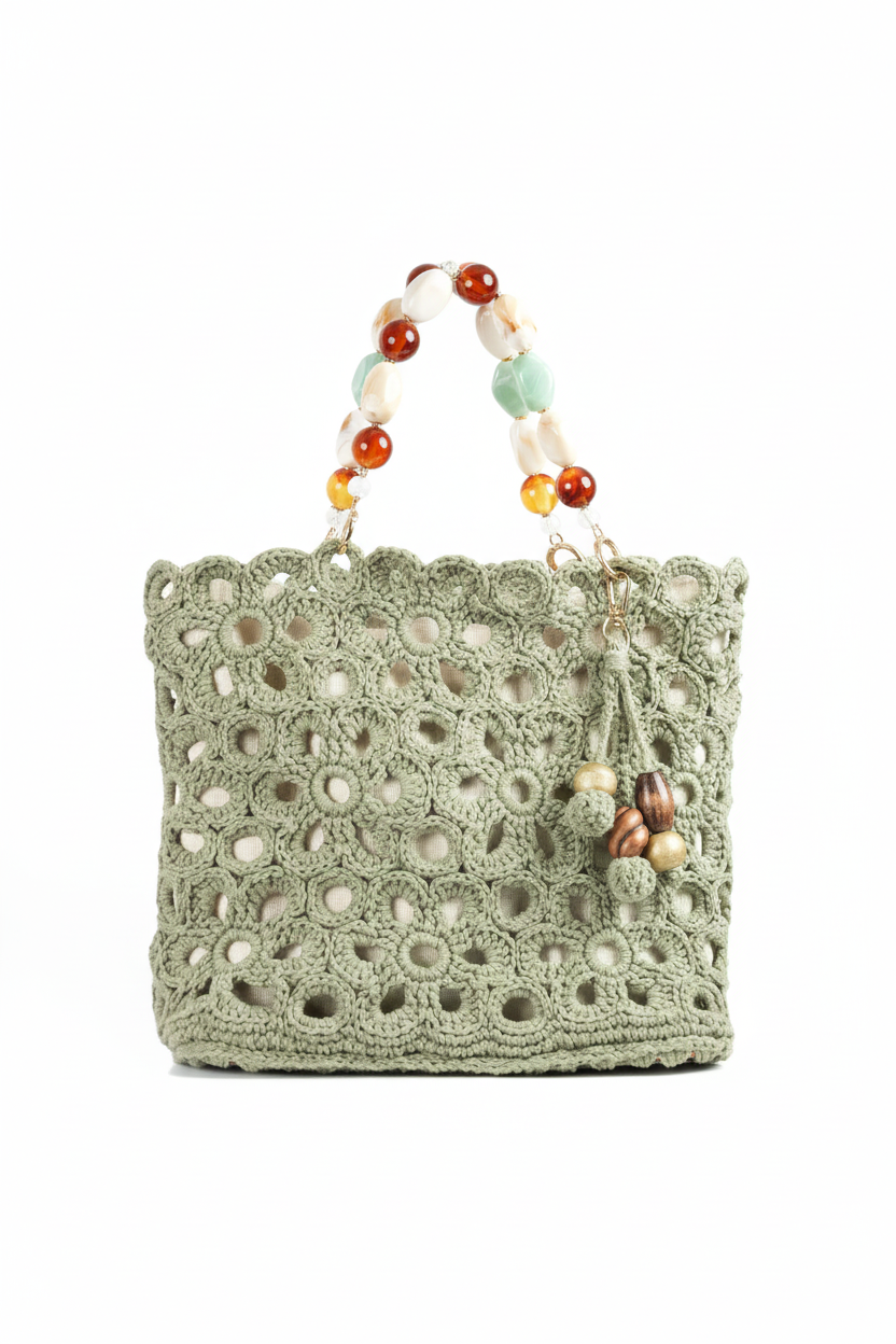 Statement Boncuk Saplı El Yapımı Örgü Çanta – Çiçek Motifli Tasarım